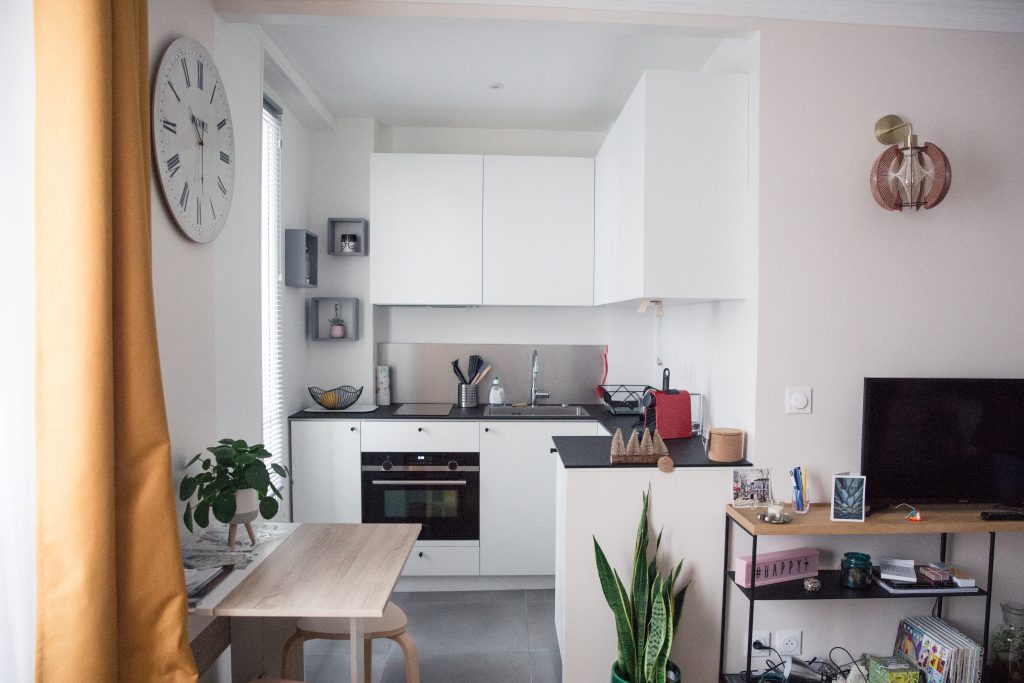 Dans ce charmant deux pièces parisien, chaque pièce a été rafraichie et mise et au goût de la propriétaire: séjour, cuisine, chambre et salle d'eau.